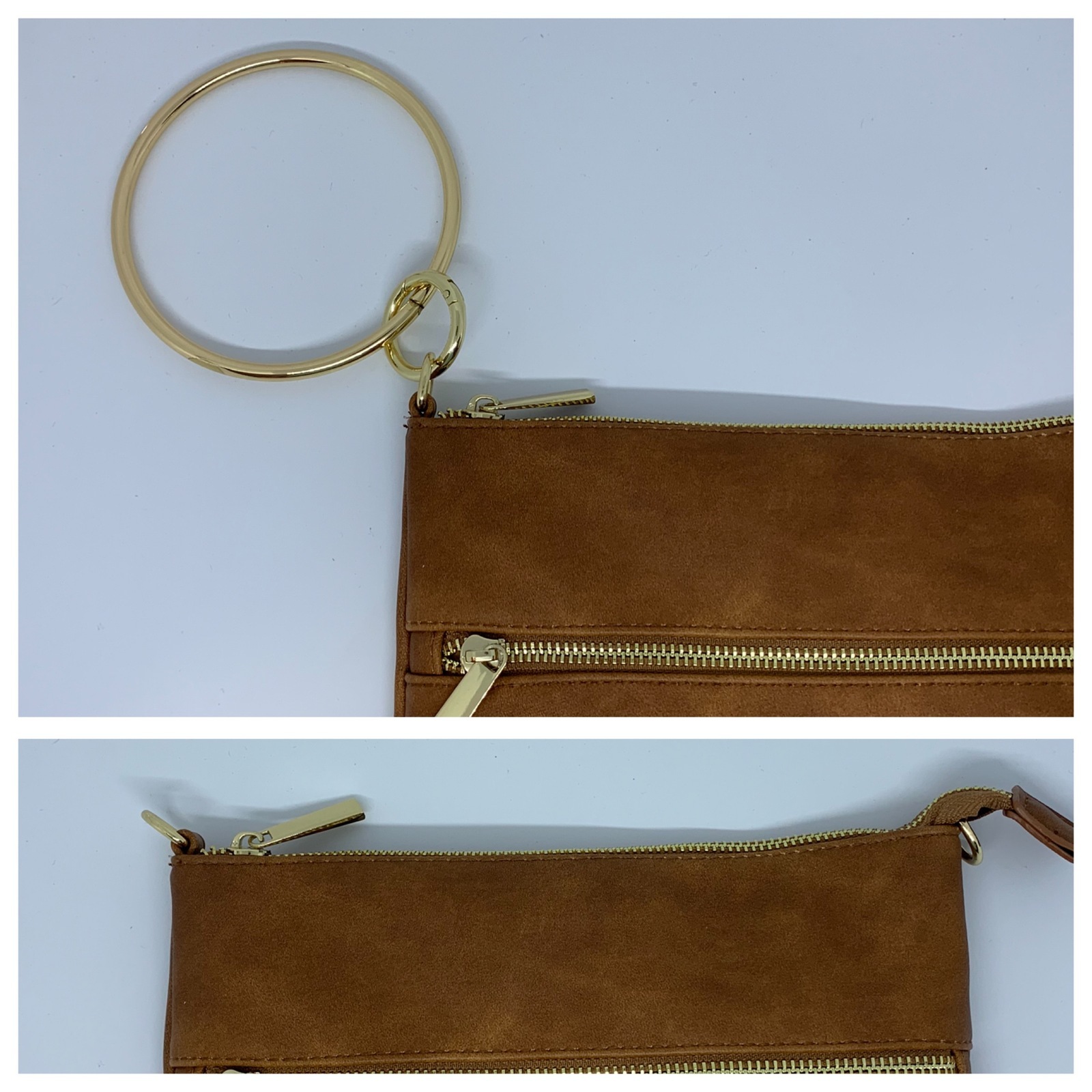 Round metal bangle style ring, perfect to attach to clutches and bags.