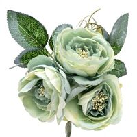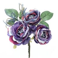 Flower bunch contains 3 wired flowers, leaves and a twine loops.