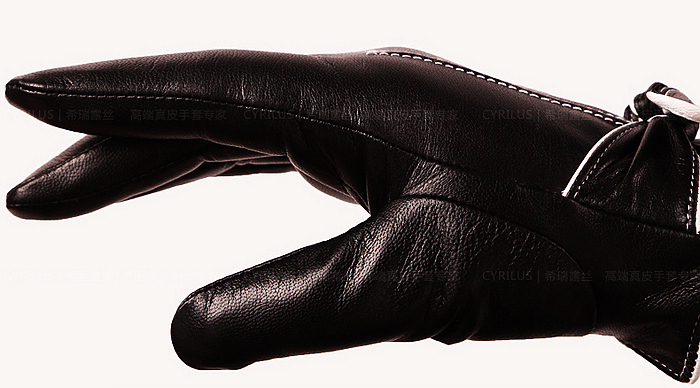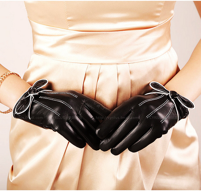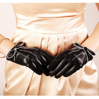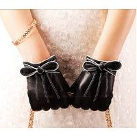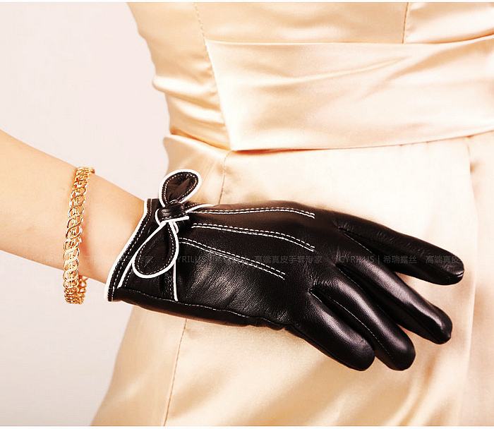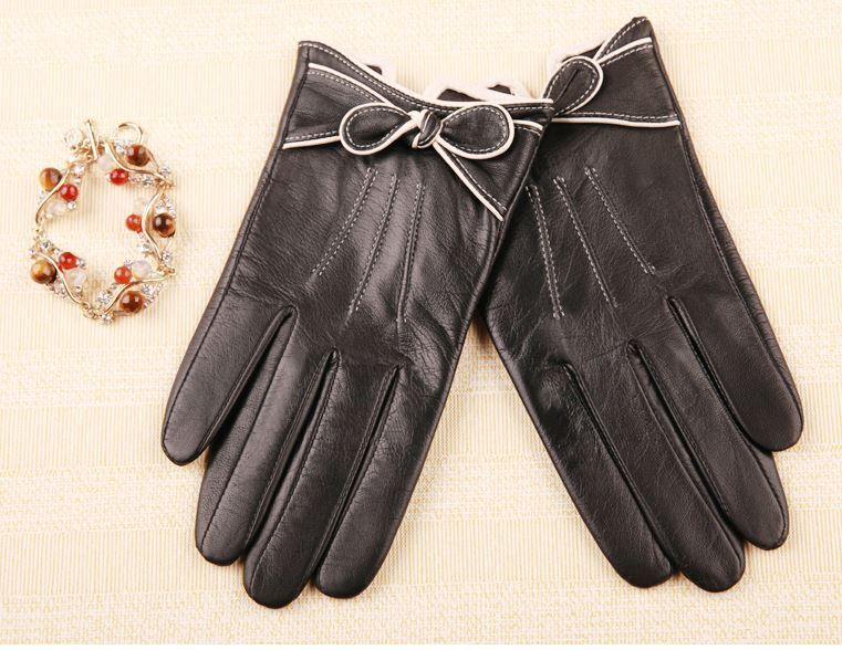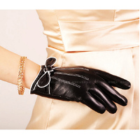 Beautiful soft leather gloves with a knotted bow and fine piping work. Comes in gift box.